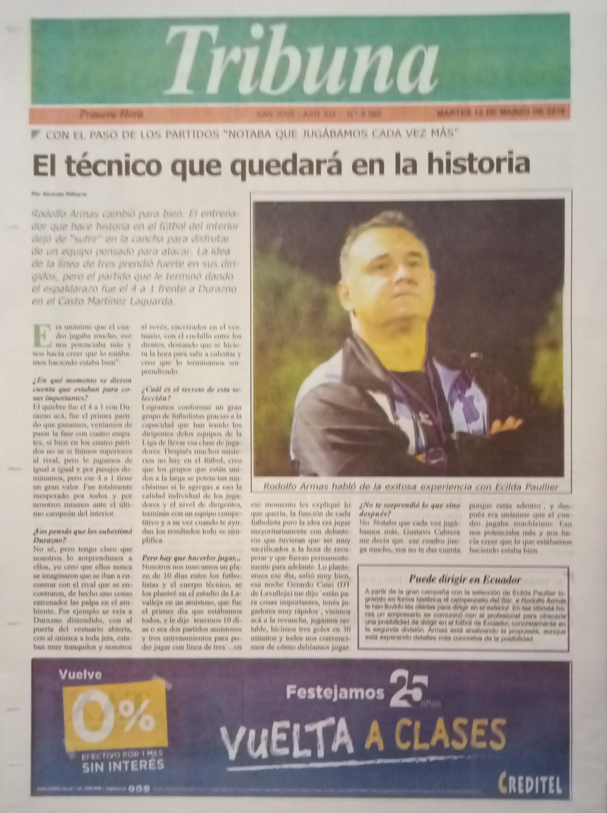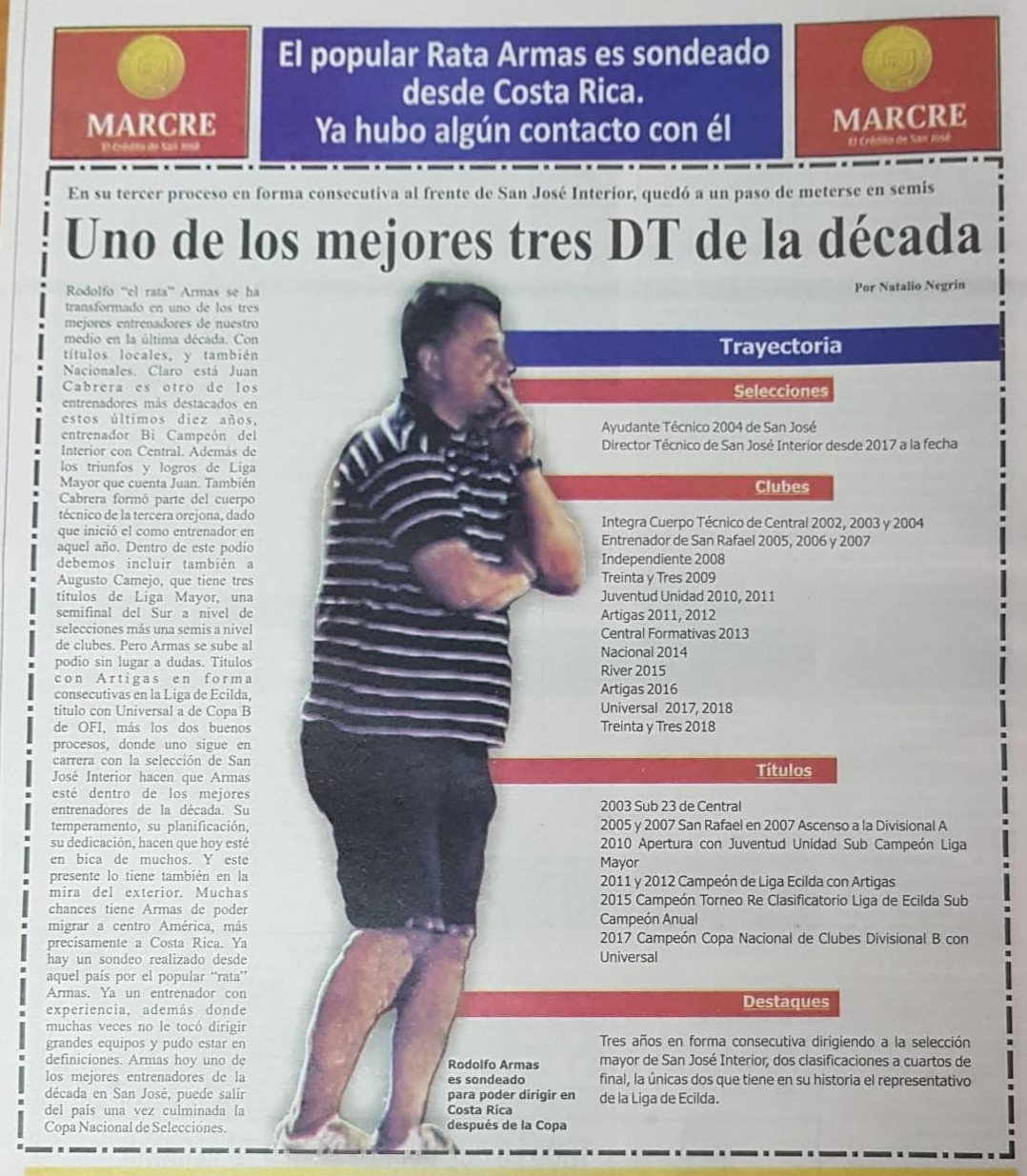 Tras golear en las dos finales a la Selección de Colonia, con un global de 7 a 1 (dejando así un resultado histórico) Rodolfo Armas se transformó en el primer Director Técnico en ganar la Copa de Selecciones del Sur con una selección de San José (Interior).